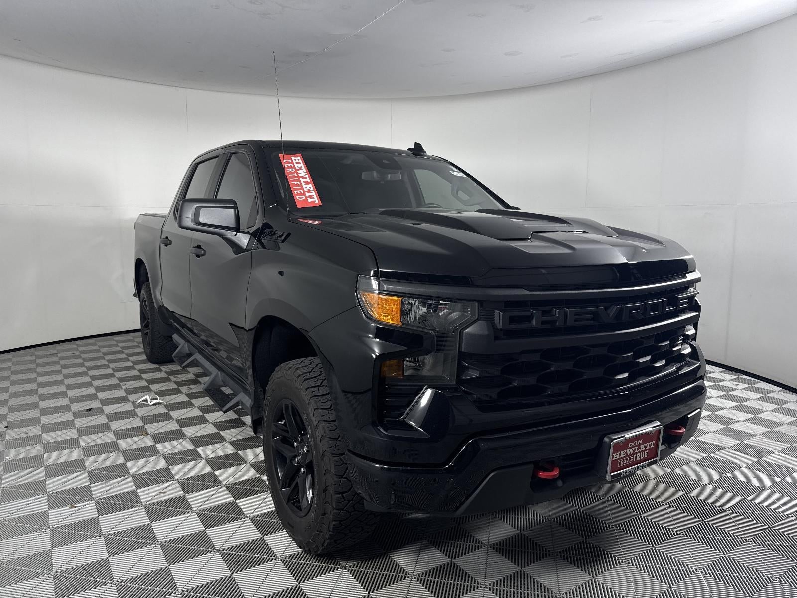 Learn About This Used 2023 Black Chevrolet Custom Trail Boss Silverado 1500 for Sale in Metro Austin, VIN = 3GCPDCEK0PG122054